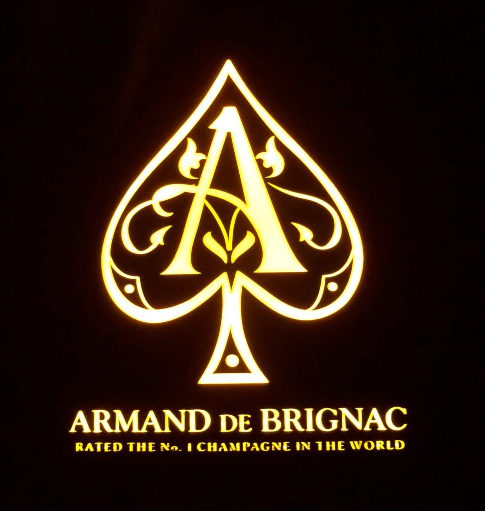 Armand de Brignac “Ace of Spades” champagne themed sign with backlighting. Perfect for bars, discos, restaurants, or home bar setups.