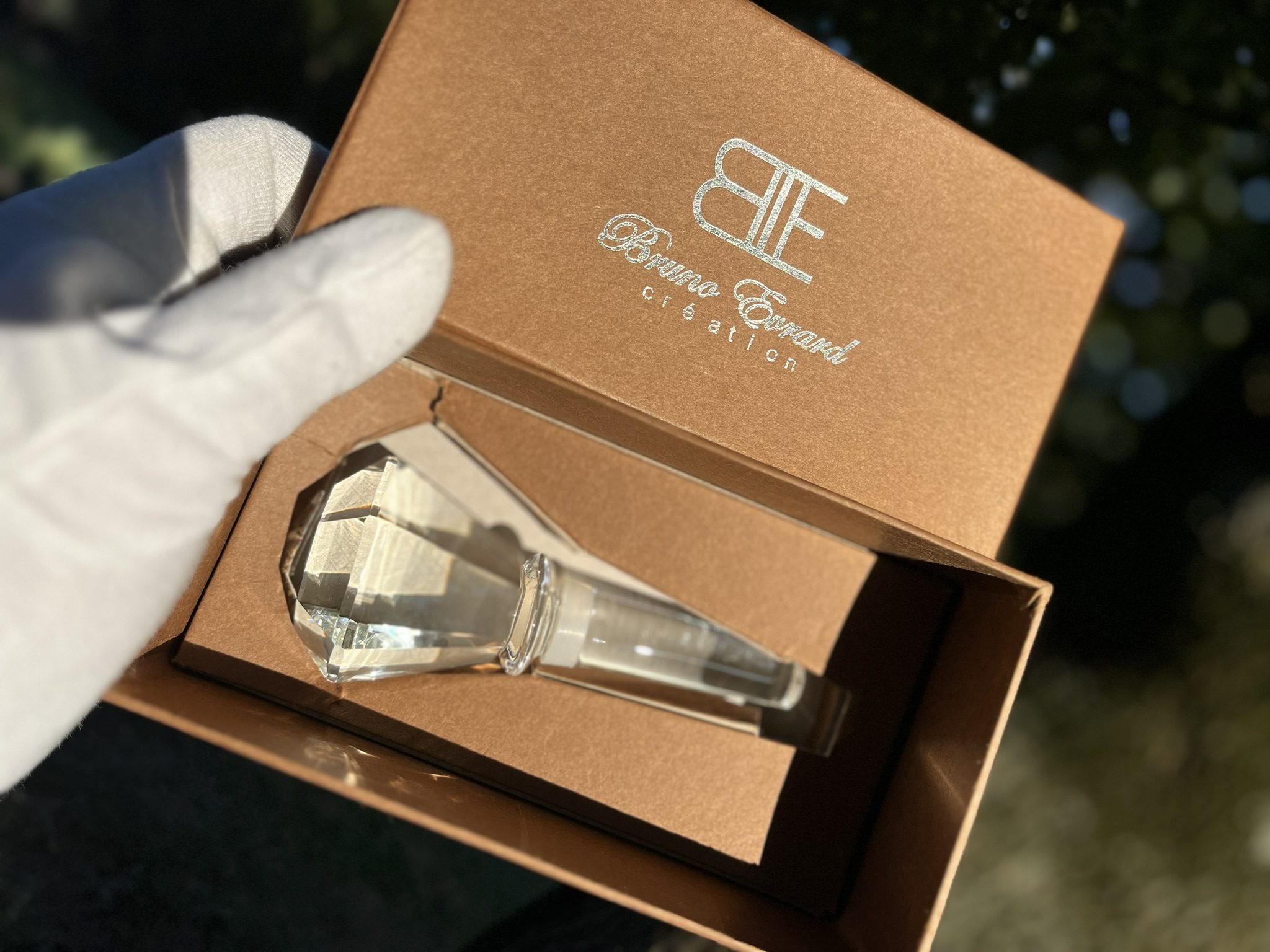 Bohemiai kristályból készült, elegáns pezsgődugó a neves Bruno Evrard Creation tervezőtől, aki az Art de la Table területének egyik kiemelkedő alkotója.