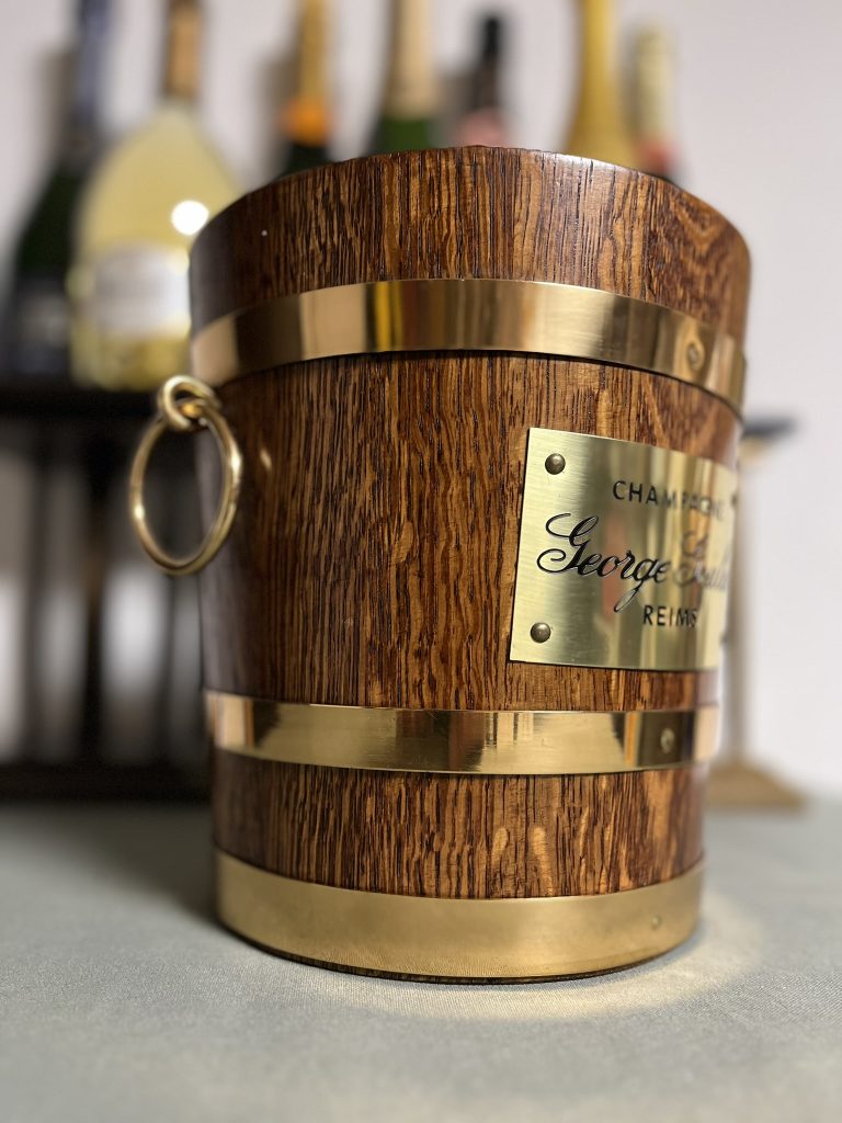 Ez a különleges pezsgőhűtő a francia kézművesség és a luxus champagne-kultúra találkozásának szép példája. A darabot az 1940-es években készítette Géraud Lafitte, aki 1933-ban elnyerte a rangos Meilleur Ouvrier de France címet. Lafitte az 1930-as és 1950-es évek között ikonikus pezsgőhűtőket és kiegészítőket tervezett a neves George Goulet pezsgőház számára.
