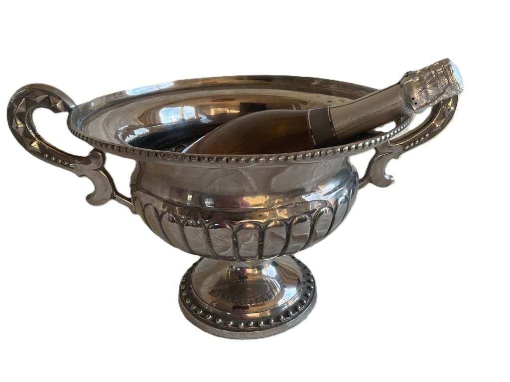 The cooler is made of silver-toned metal with a beautiful polished surface, showing light signs of use consistent with its age.