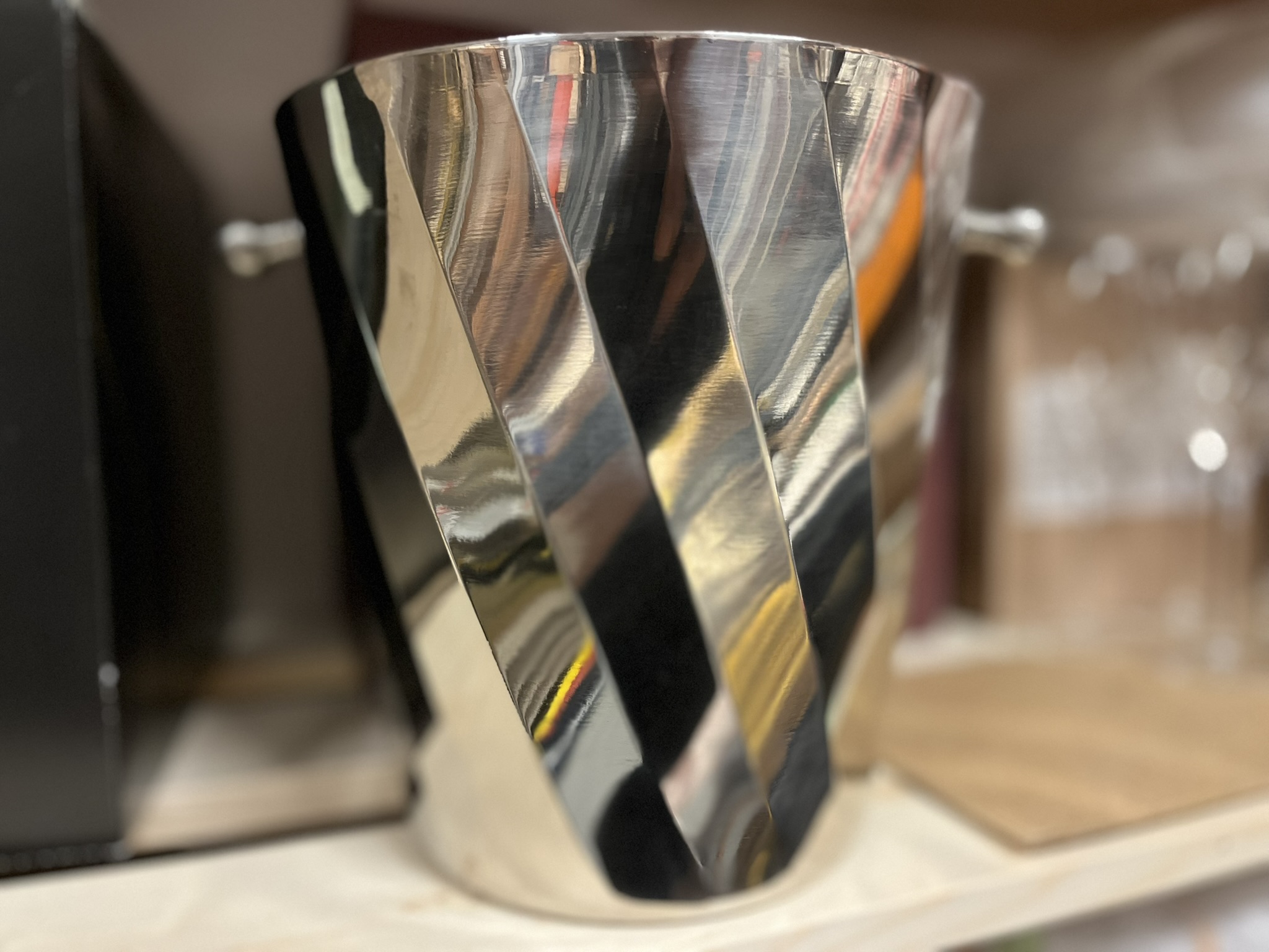 The ribbon-adorned Moët & Chandon ice bucket showcased here was released for the company’s 250th anniversary in 1993.