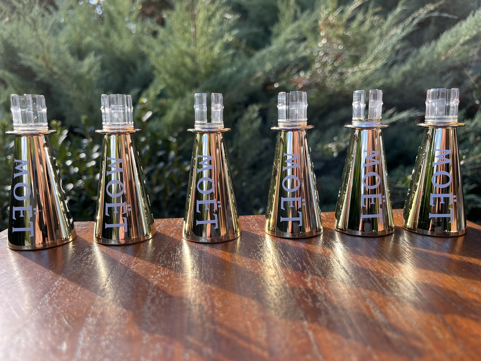 - 6 Moët Mini Champagne Bottle Sippers – designed to allow elegant sipping directly from mini Moët champagne bottles.
