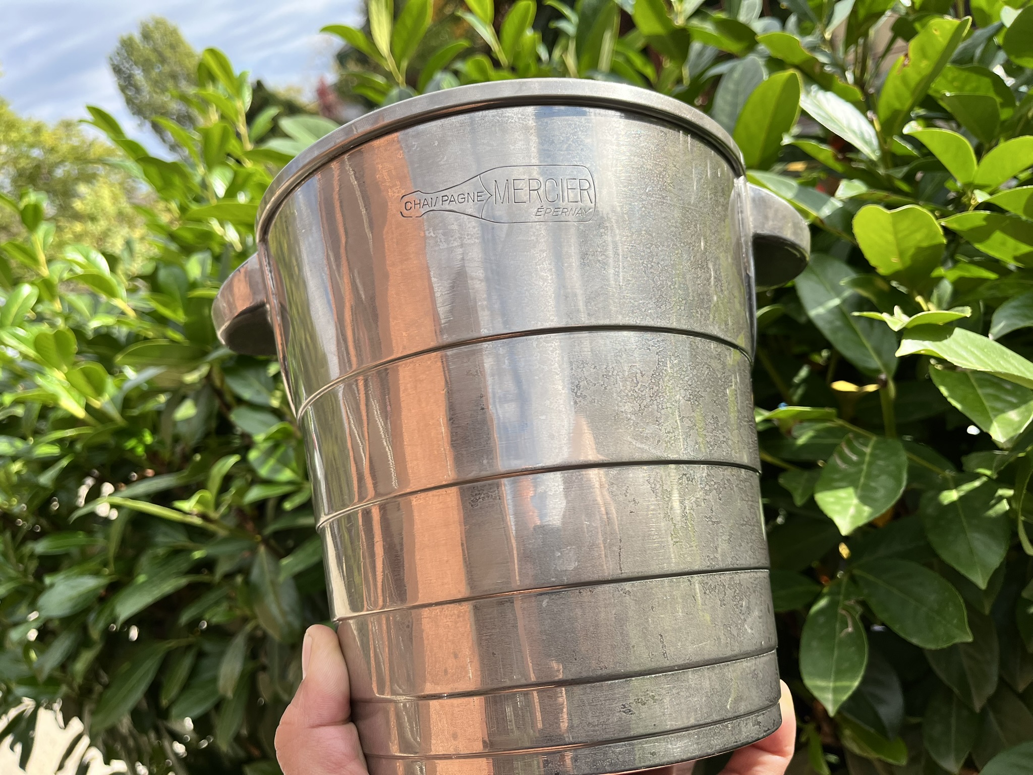 This elegant Moët & Chandon vintage champagne bucket was crafted by Argit in lightweight aluminium. The embossed grape and vine decorations encircling the body lend it a touch of classic French charm.