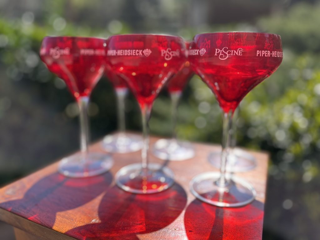 The term “La Piscine” literally means “the pool” in French, referring to a relaxed, stylish way of enjoying champagne—often over ice, in larger glasses, typically in a poolside or summer party setting.