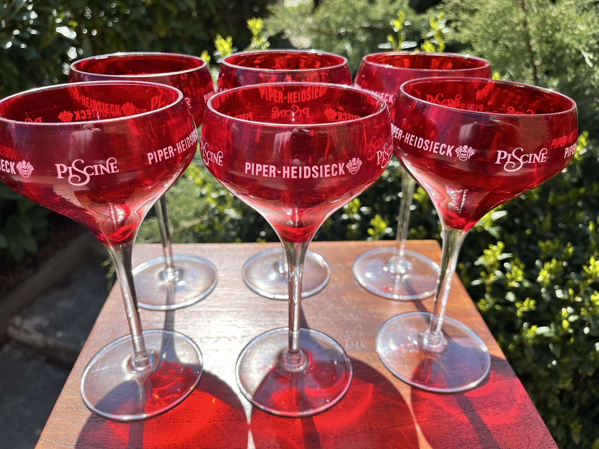 Piper-Heidsieck “La Piscine” Ruby Red Acrylic Champagne Glass Set (6 pcs) – Shatterproof Pool Party Style