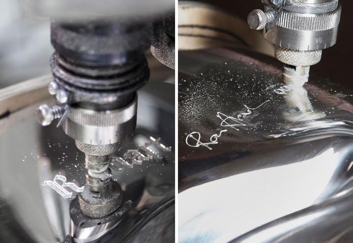 A Ron Arad által megálmodott darab a Ruinart Blanc de Blancs pezsgő hűtésére készült, és nemcsak funkcionális, hanem látványában is lenyűgöző. A tervező az ívformák és a fémmegmunkálás mestereként hozott létre egy letisztult, dinamikus, mégis játékos tárgyat, amely a szabad formavilágot és a mozgás érzetét tükrözi – ez Ron Arad teljes életművének védjegye.