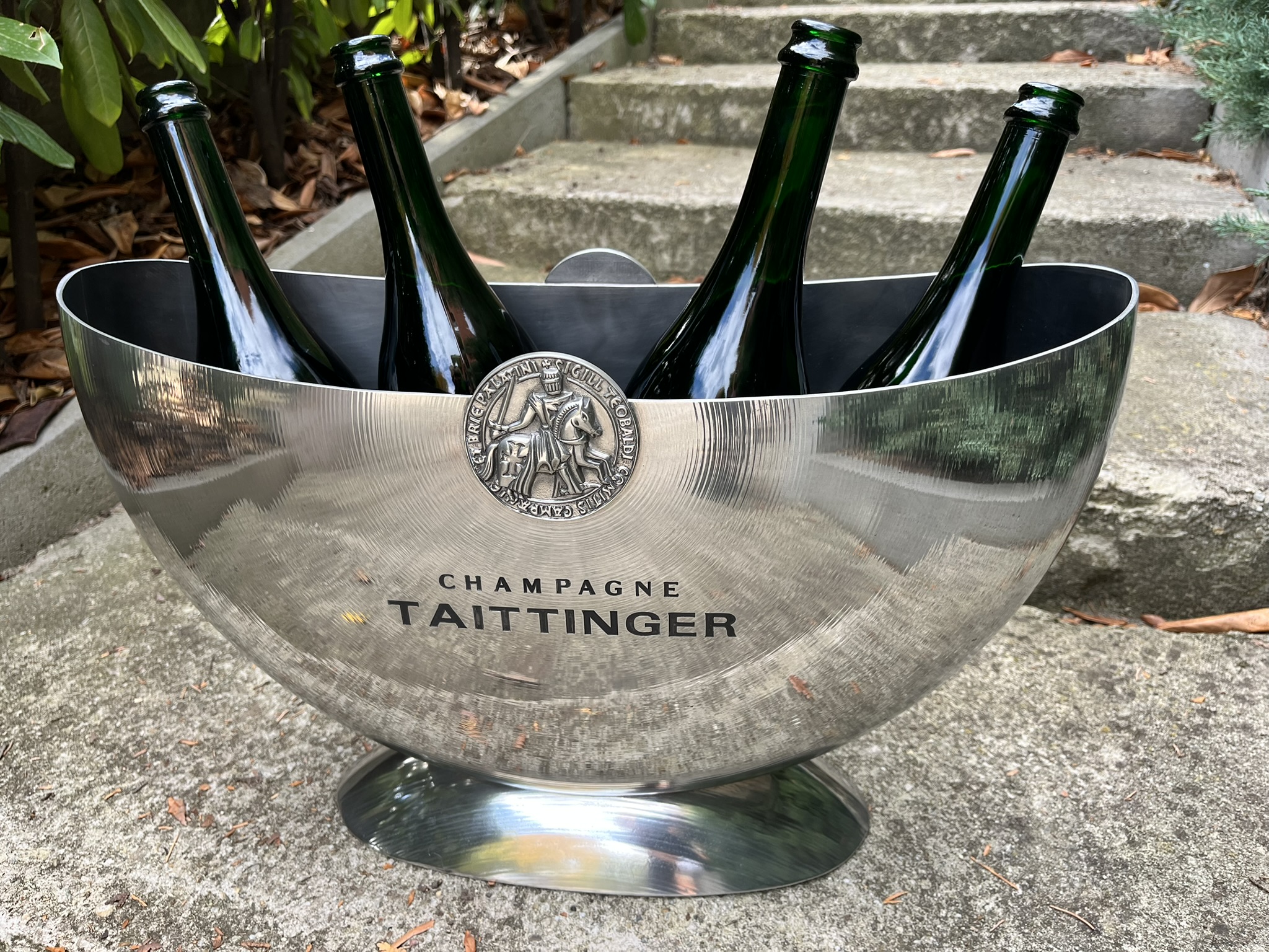More than a functional champagne cooler, this sculptural piece is a true masterpiece of pewter craftsmanship—an extraordinary fusion of design, history, and utility. Its rarity and desirability place it among the world’s most iconic and collectible Taittinger champagne veder pieces.