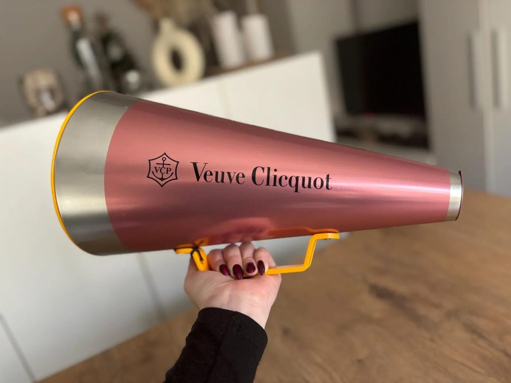 Egy rendkívül ritka és ikonikus Veuve Clicquot kiegészítő a 2010-es évből: a „Scream Your Love” Megafon Pezsgőhűtő, amely egyaránt funkcionál jégvederként és megafonként. A gyűjtők körében keresett darab különlegessége, hogy a praktikumot ötvözi a játékos, merész dizájnnal.