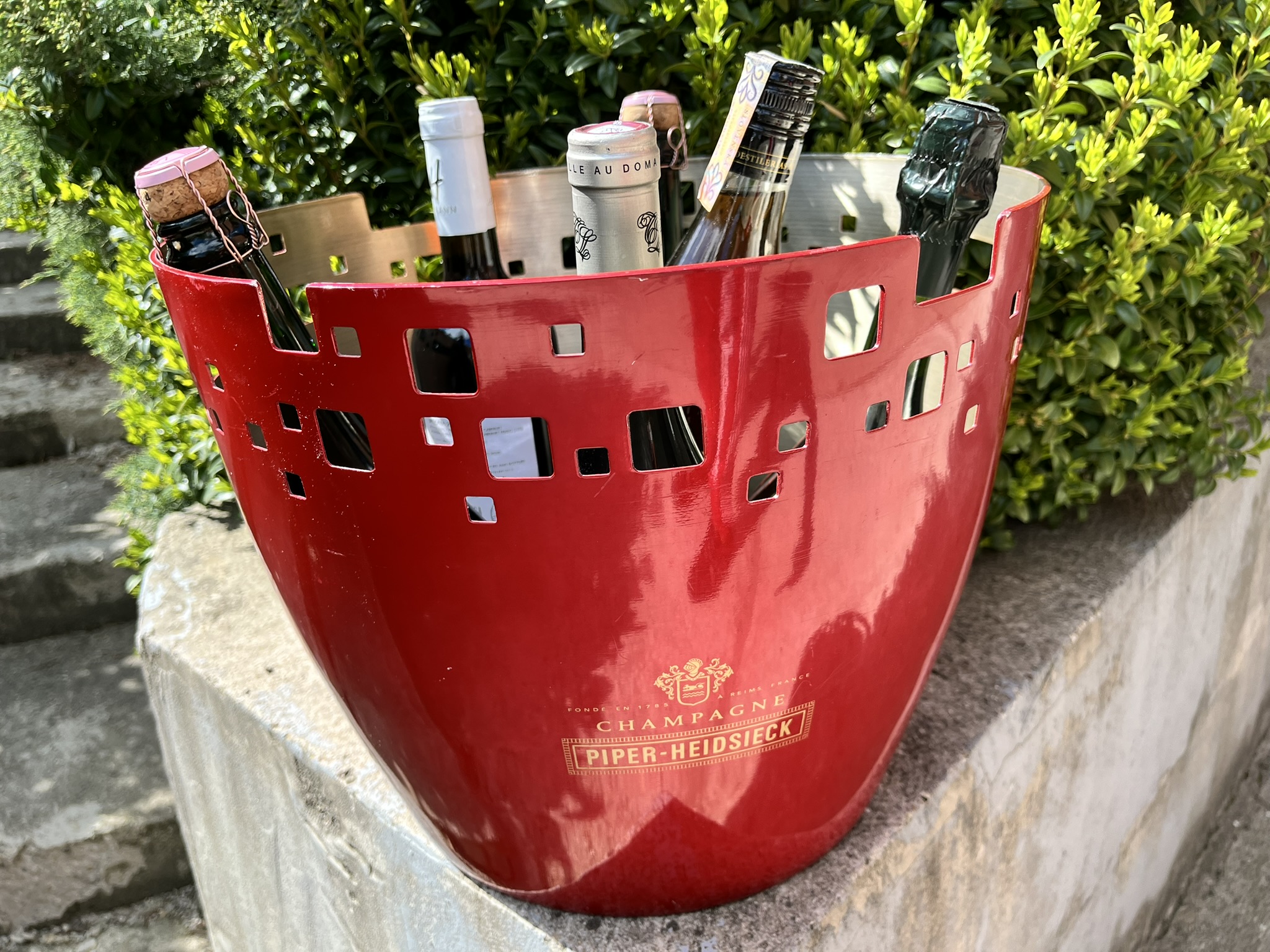Vintage Piper-Heidsieck XXL Champagne Ice Bucket – Holds 6 Bottles or 3 Magnums, Red Aluminum